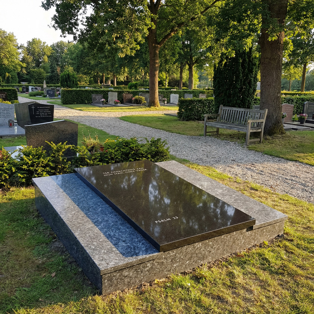 Een urngraf biedt ruimte voor een compact, maar bijzonder monument. U kunt kiezen uit verschillende natuursteensoorten zoals graniet, marmer of hardsteen, in uiteenlopende kleuren en afwerkingen. Denk aan een kleine staande steen met dekplaat, een liggende zerk of een subtiel gedenkteken met persoonlijke gravure. Ook symbolen, foto’s of accessoires kunnen wij zorgvuldig verwerken in het ontwerp. Zo ontstaat een blijvende herinnering in natuursteen, volledig afgestemd op uw wensen.